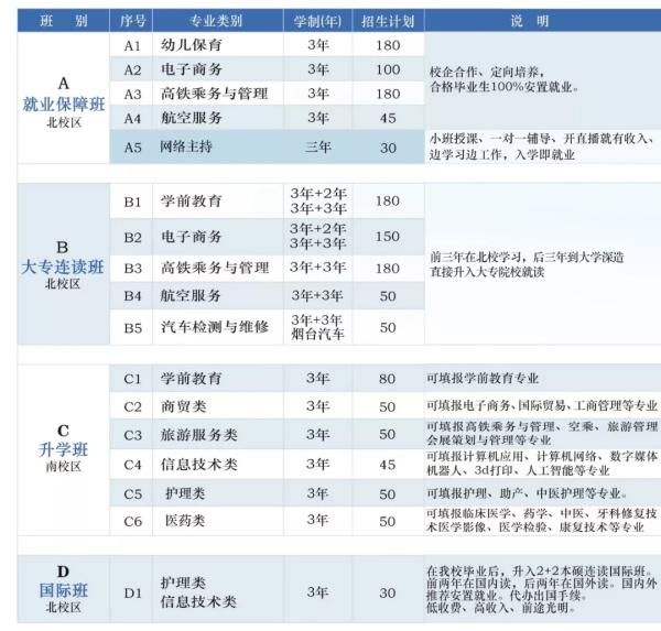 济南应用技术职业中等专业学校根据学生的特点设为就业班和升学班,就业班入学即签订就业协议,合格毕业生学校推荐安置工作,升学班参加春季高考或单招考试,保专科,冲本科,本科升学率高达40%左右。